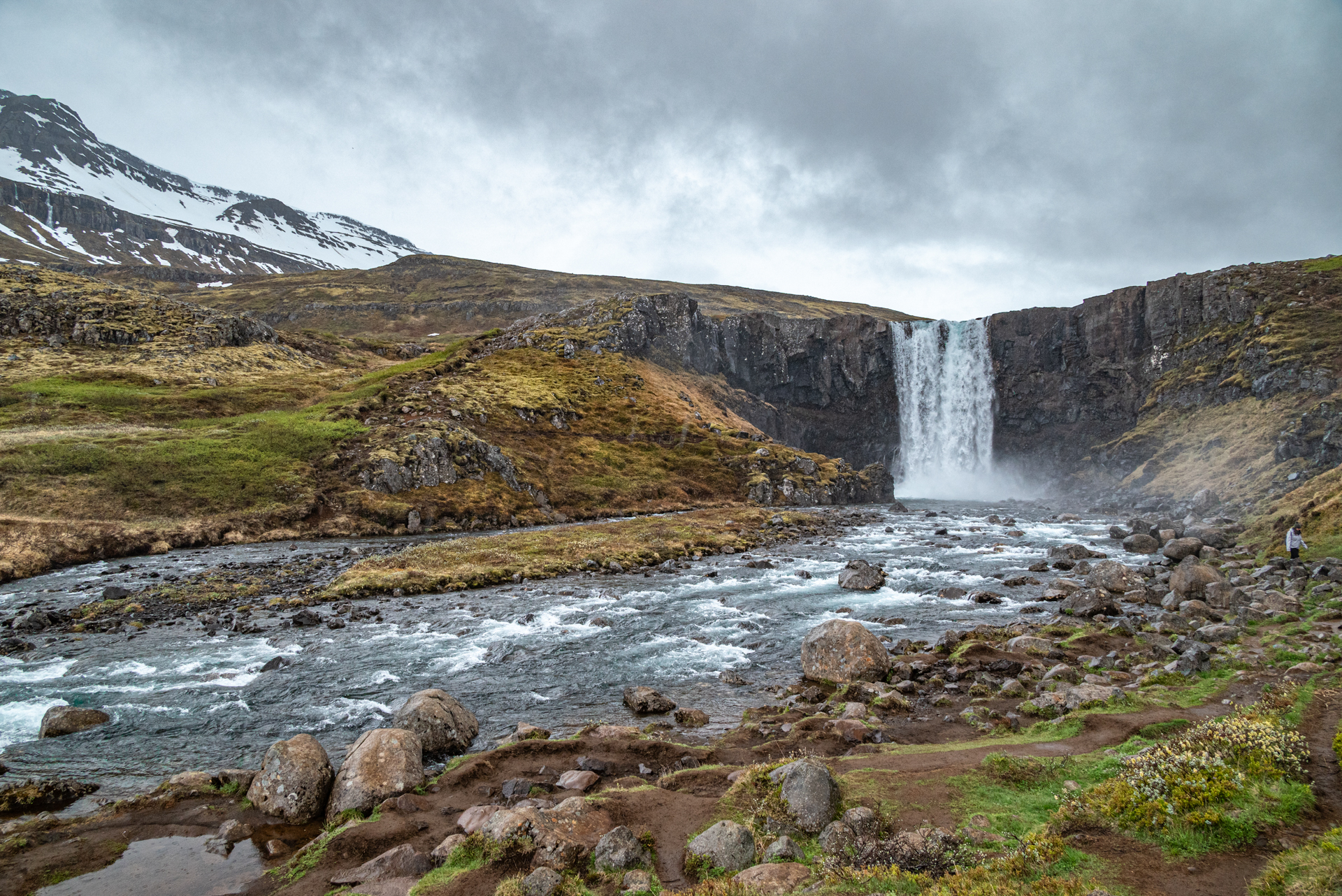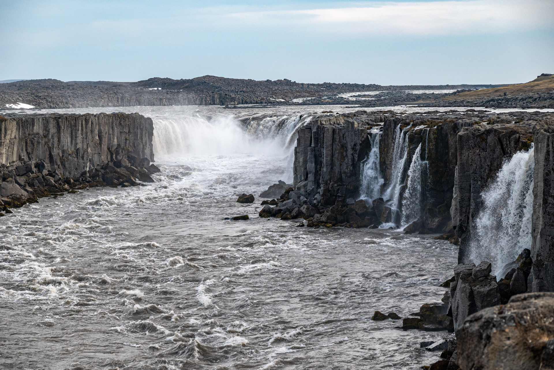 Stroomopwaarts ligt de hoefijzervormige Selfoss met zijn vele cascades. De breedte en de omliggende ruige lavavelden maken het een indrukwekkende plek.