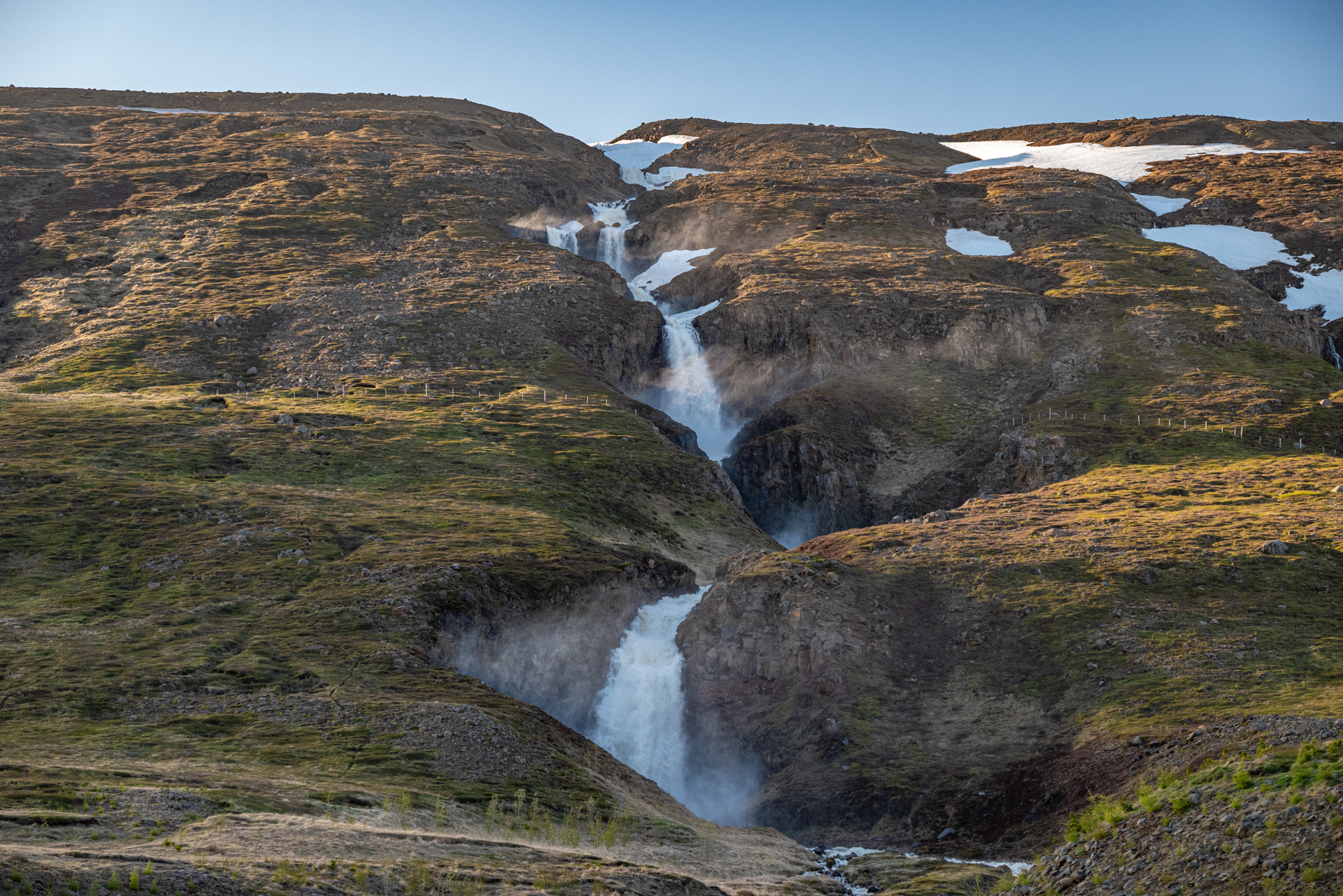Wij hebben de watervallen bekeken langs de westkant. De oostkant is mooier maar de gravelweg ernaartoe was nog afgesloten (onvoldoende dooi).