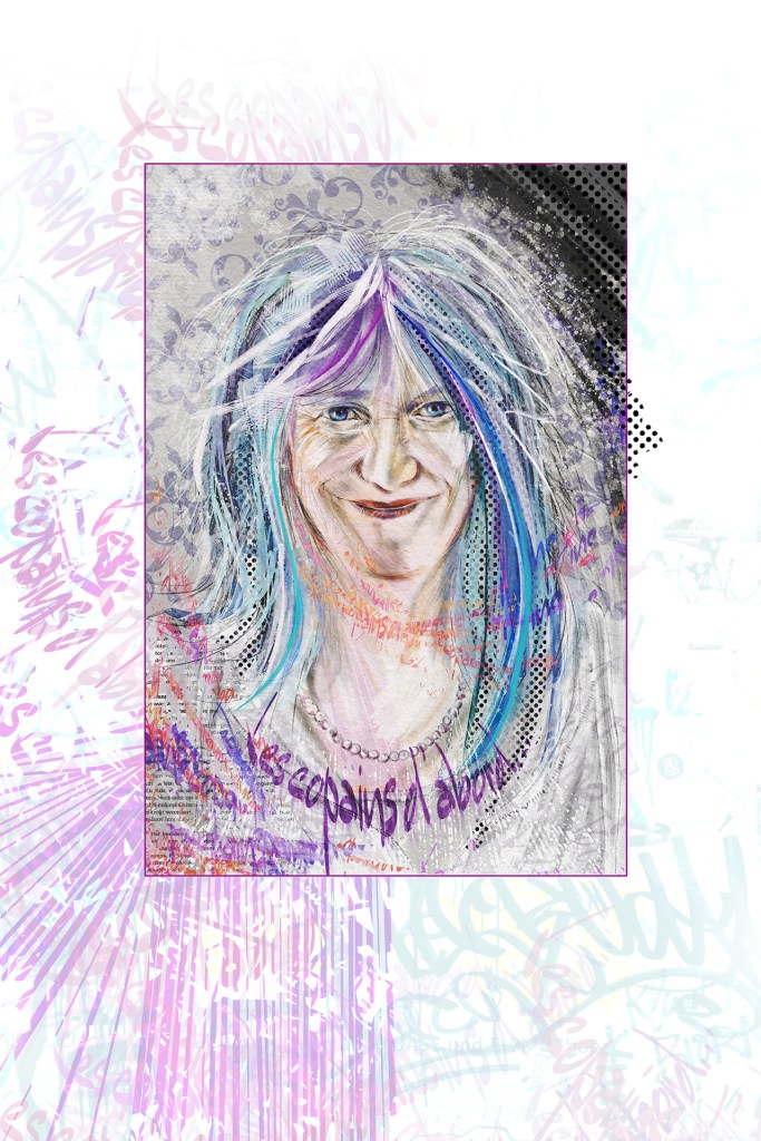 Mijn werk ‘Verhuld verhaal’ komt in het verzamelalbum. Het hoort bij het gedicht ‘De tekens’. Mixed media, gicléeprint, 48×64 cm.