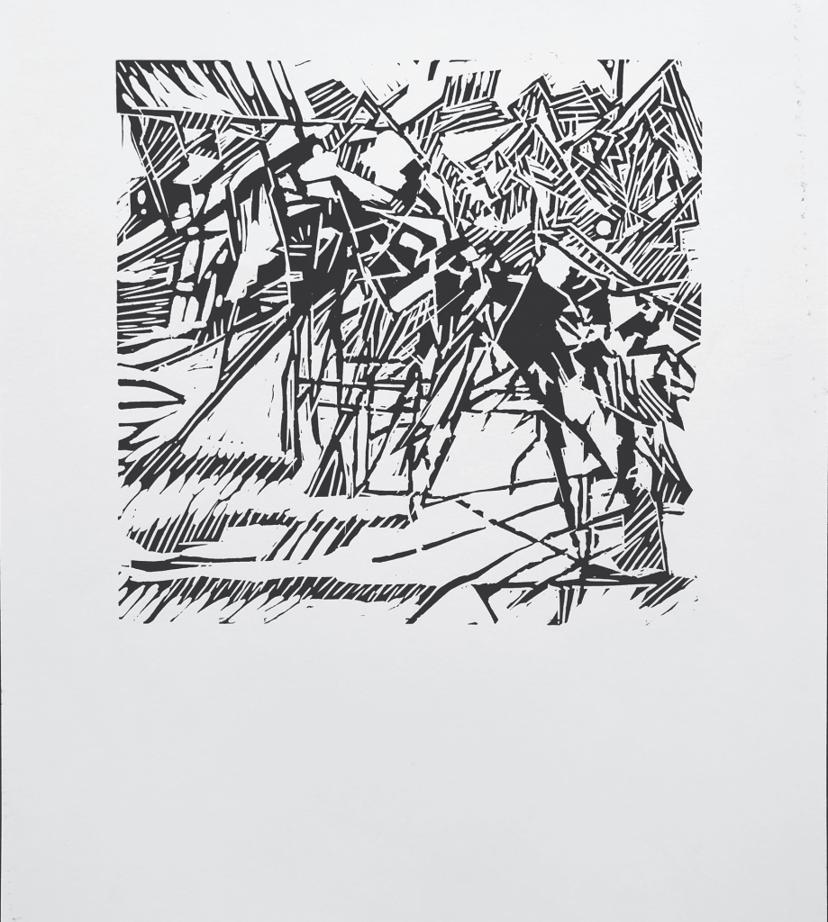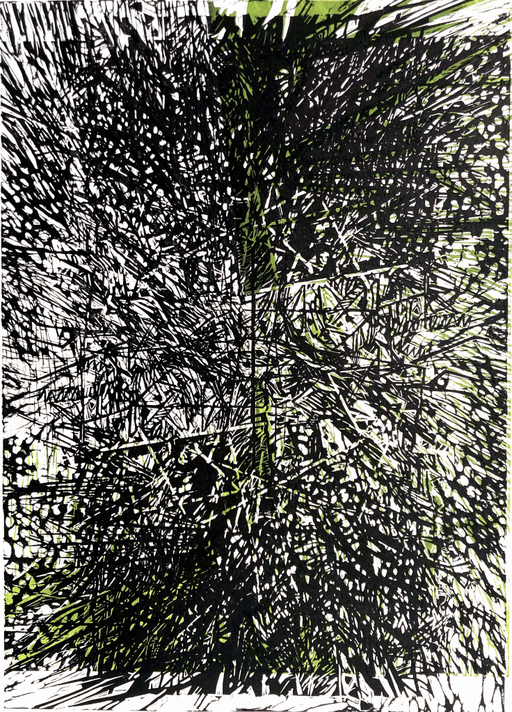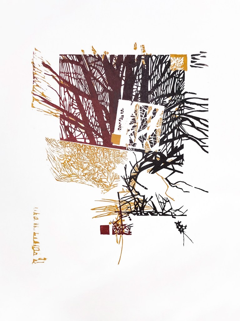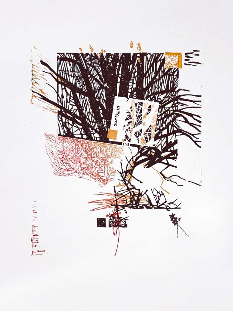 Linotypie van takken en boom, dubbeldruk of enkeldruk