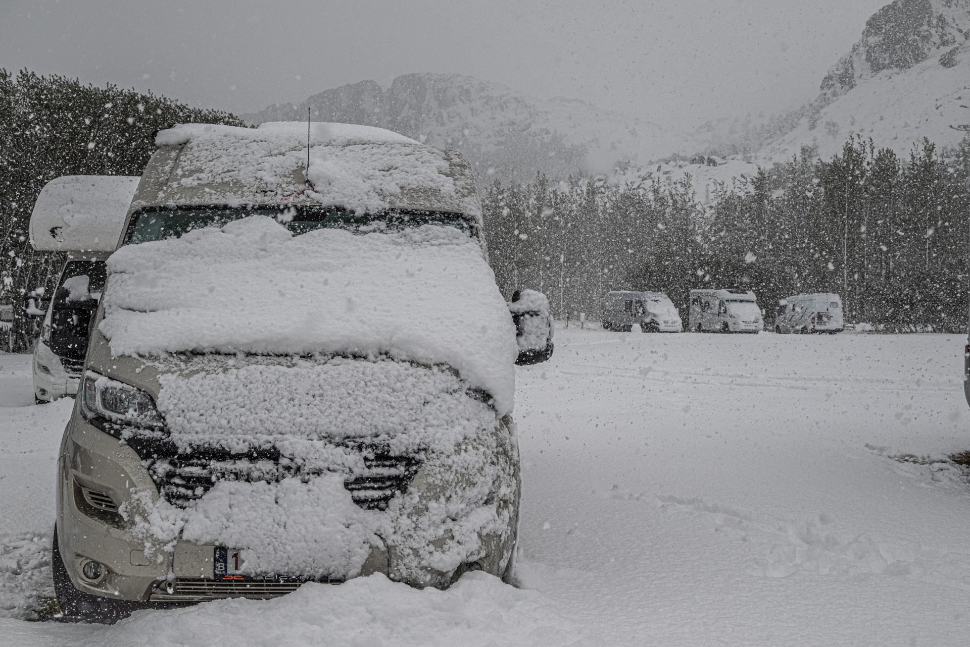 We hadden bovendien geen winterbanden voorzien, in juni.