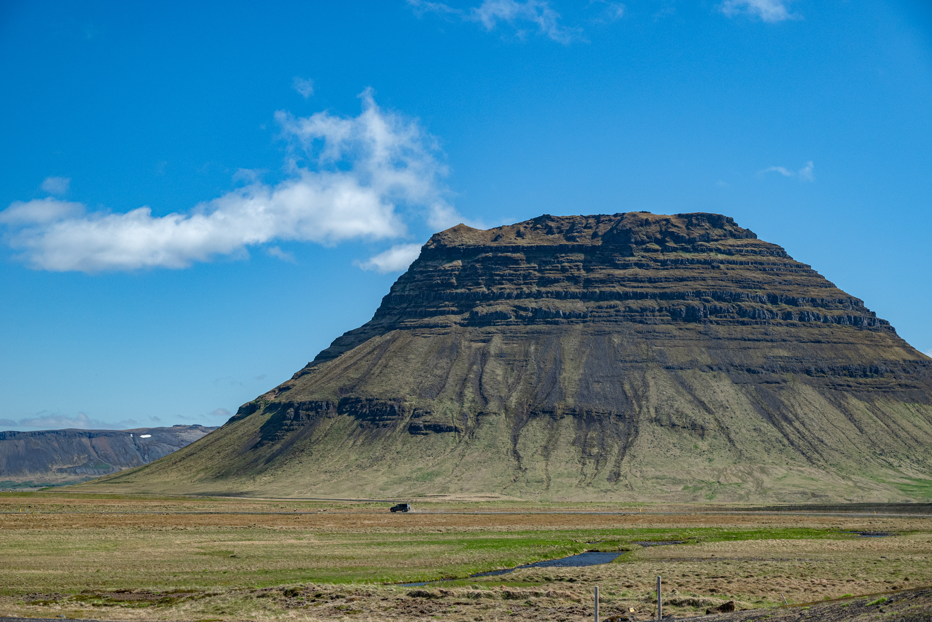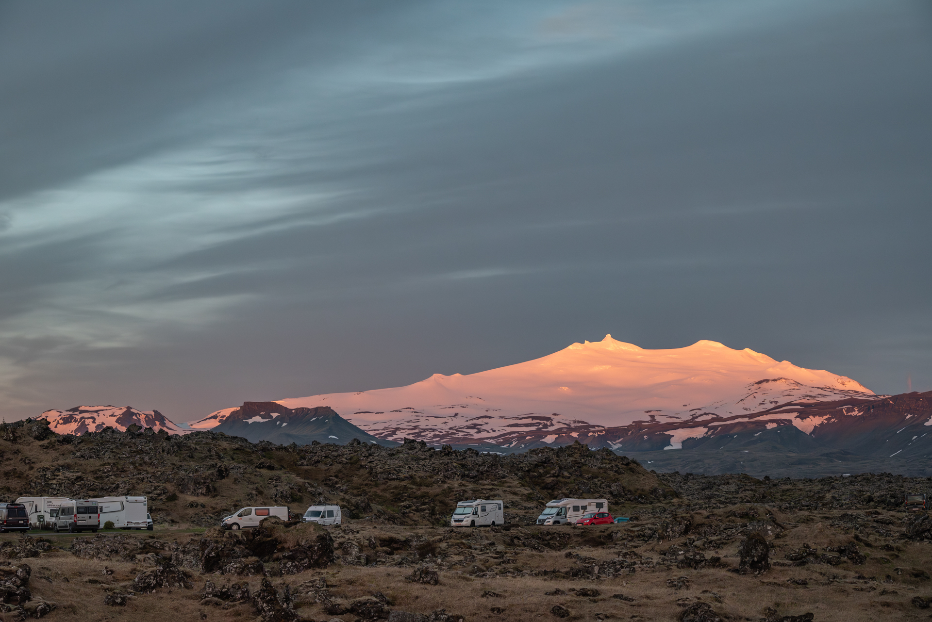 Logisch zou zijn dat we vanuit het noorden naar de Westfjorden zouden rijden. Maar omdat het daar nog altijd sneeuwt zijn we een eind zuidwaarts gereden en dus doen we eerst een rondje op het Snaefellsnes schiereiland.