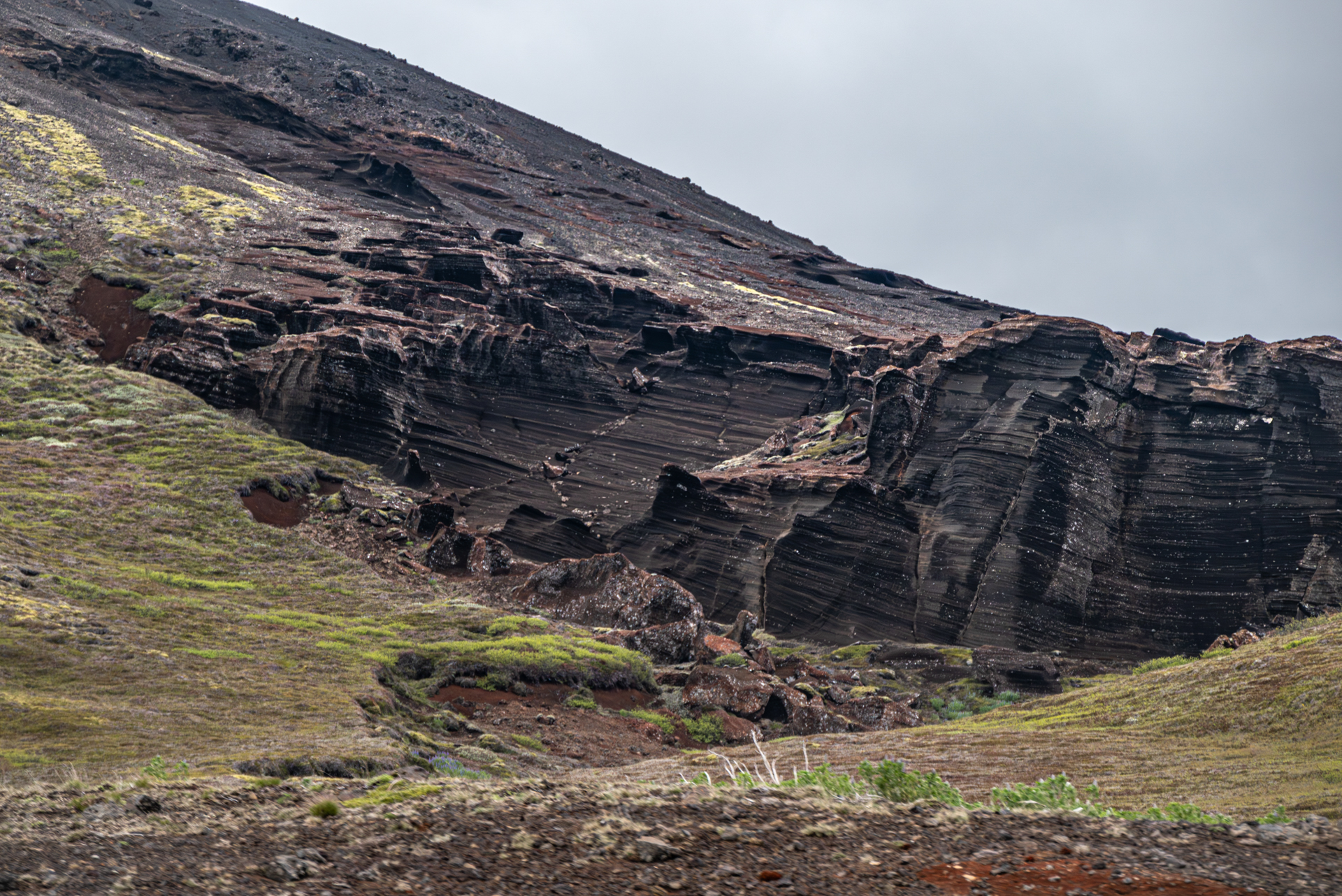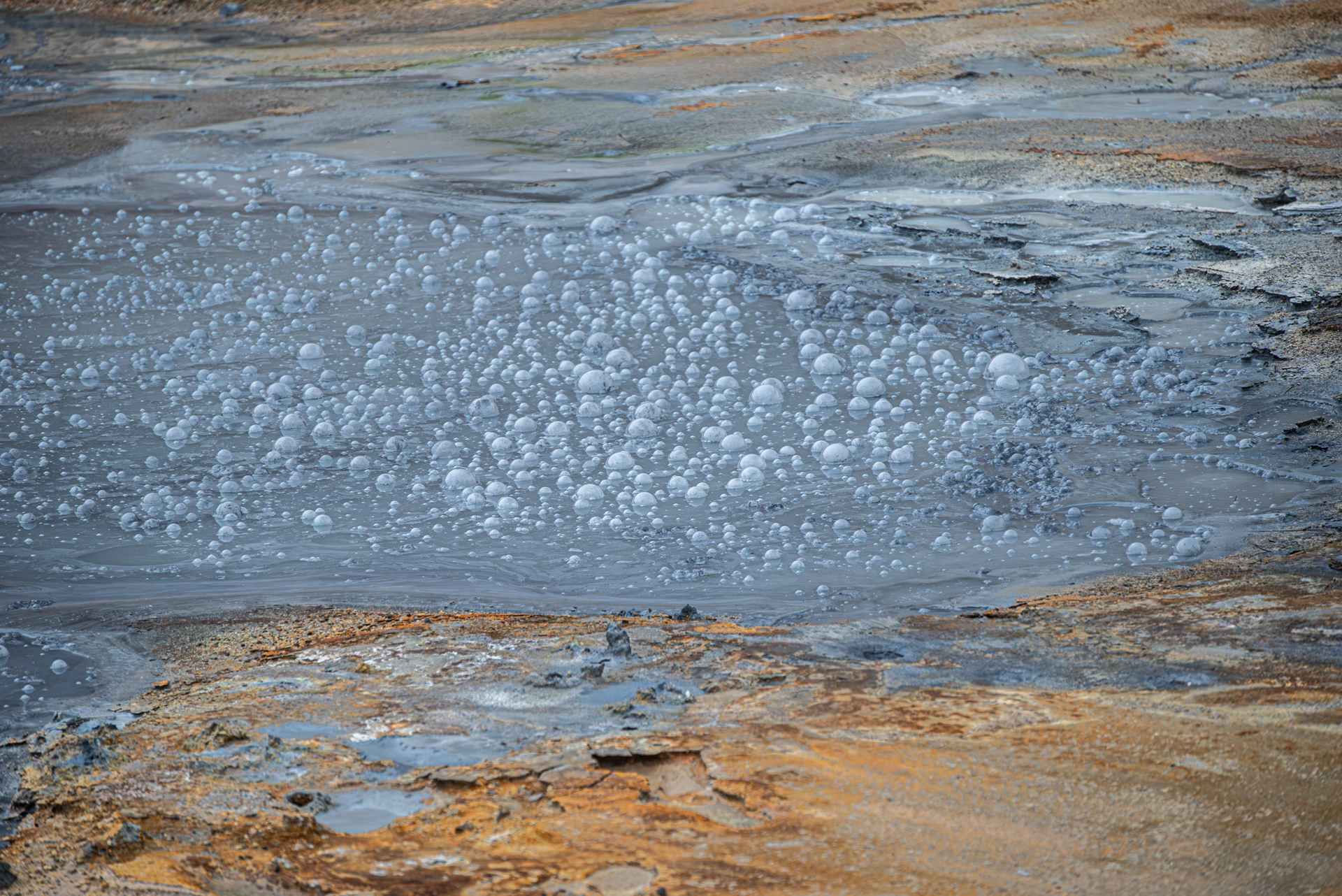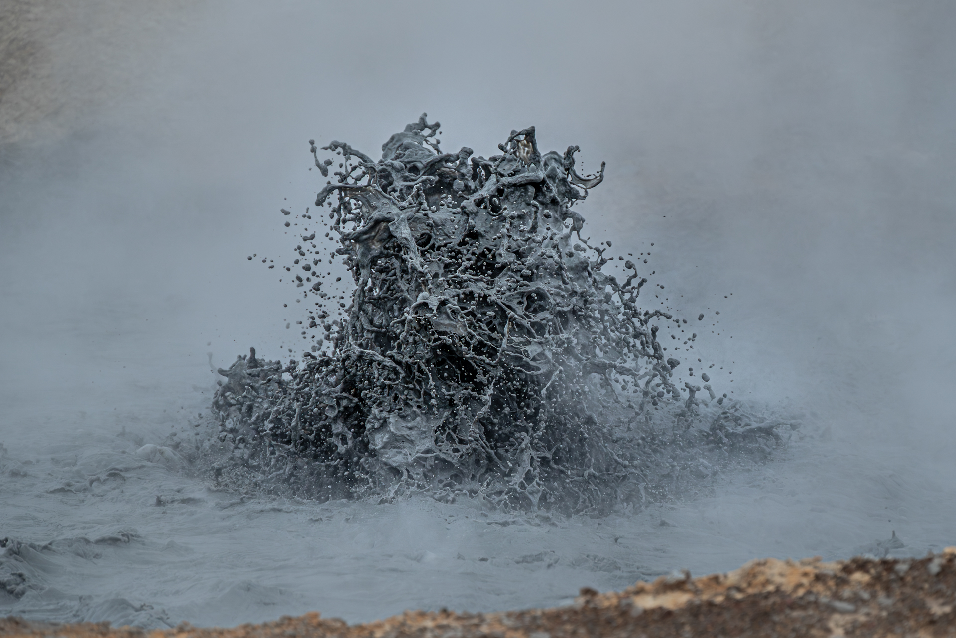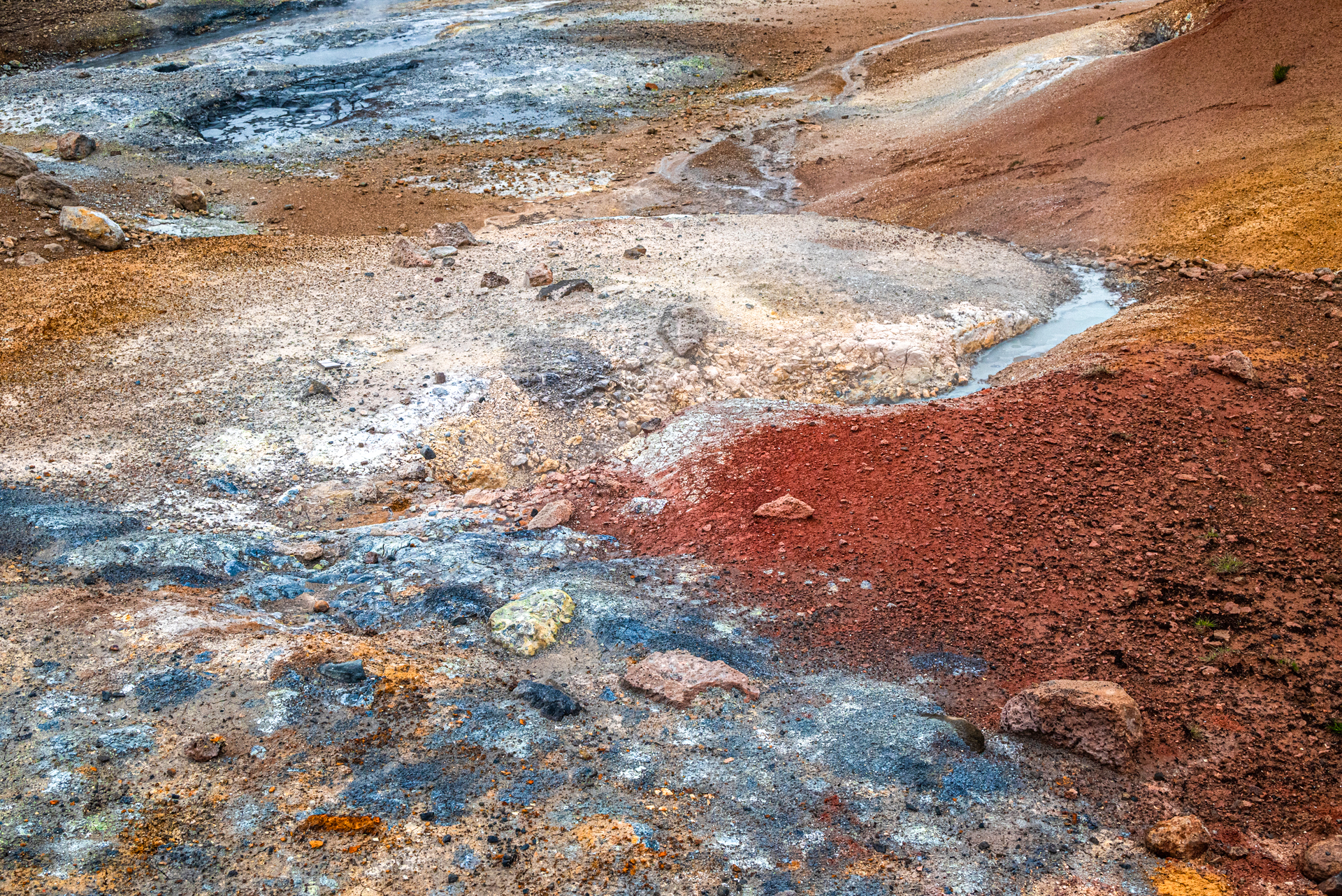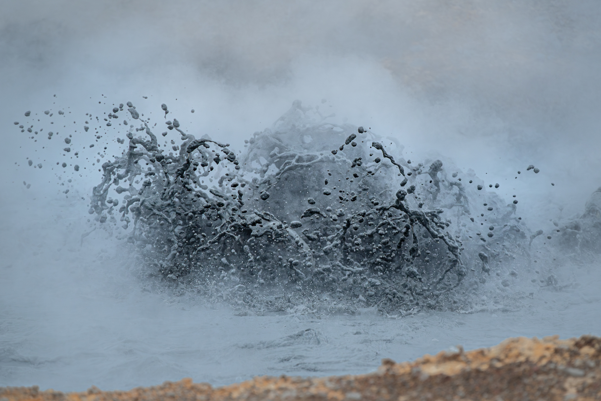 Tijdens een roadtrip door het land van vuur en ijs is het heel bijzonder om geothermische gebieden te bezoeken. Je ziet er pruttelende modderpoelen, stomend water en hoog dansende rookpluimen. In het zuidwesten van IJsland, op het schiereiland Reykjanes ligt Grindavik, intussen beroemd vanwege de recente vulkaanuitbarstingen. Waar de bewoners zelf geëvacueerd zijn mag je als toerist uiteraard niet komen. Tenzij je toevallig in de buurt bent op het moment van een uitbarsting, kan je niet veel meer zien dan zwarte lava. Maar een beetje verder is er ook nog het geothermische veld Krysuvik/Seltún. Dat is kleiner dan bv. Namaskard en ook op onze route. Namaskard was immers ondergesneeuwd (zie week 3).