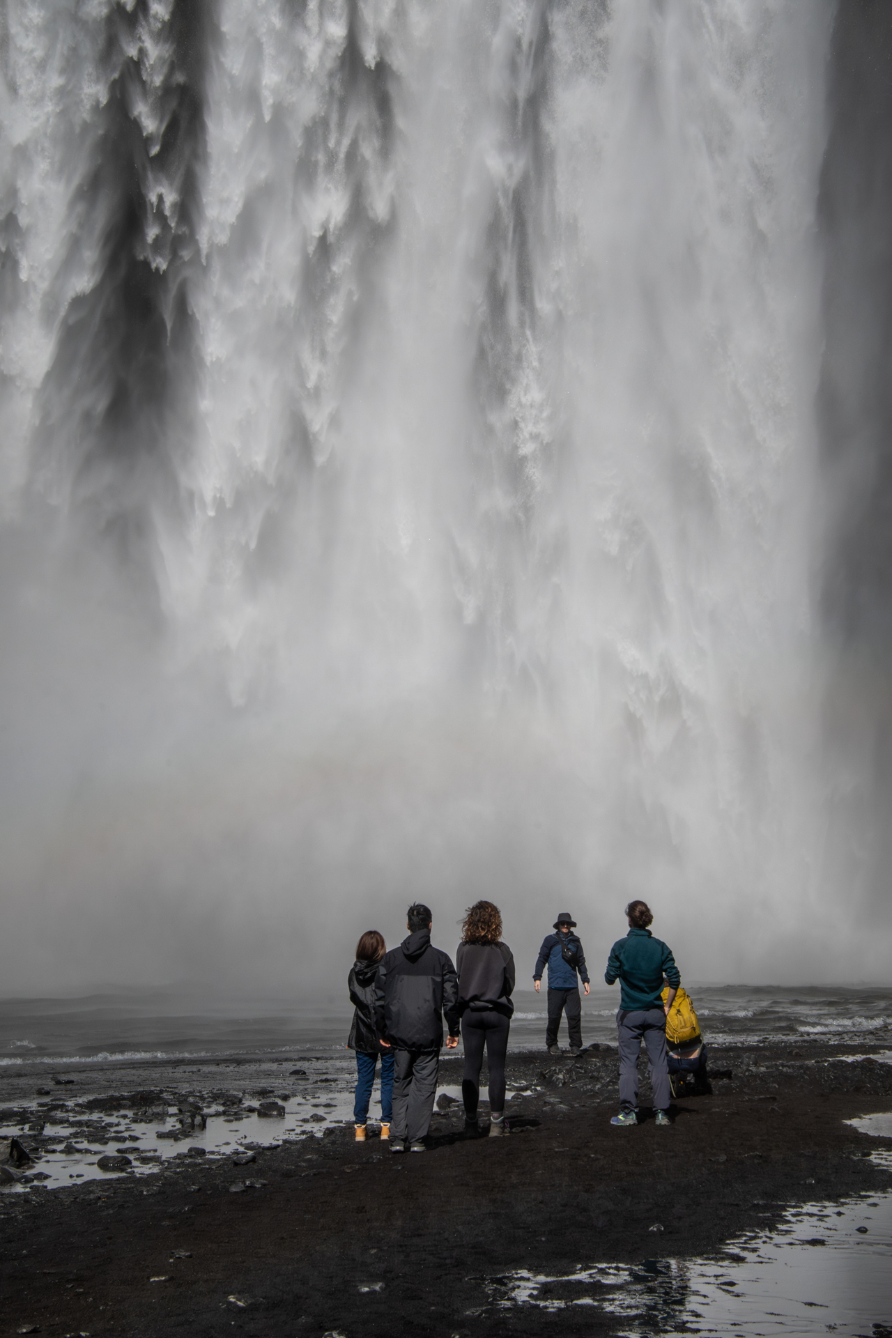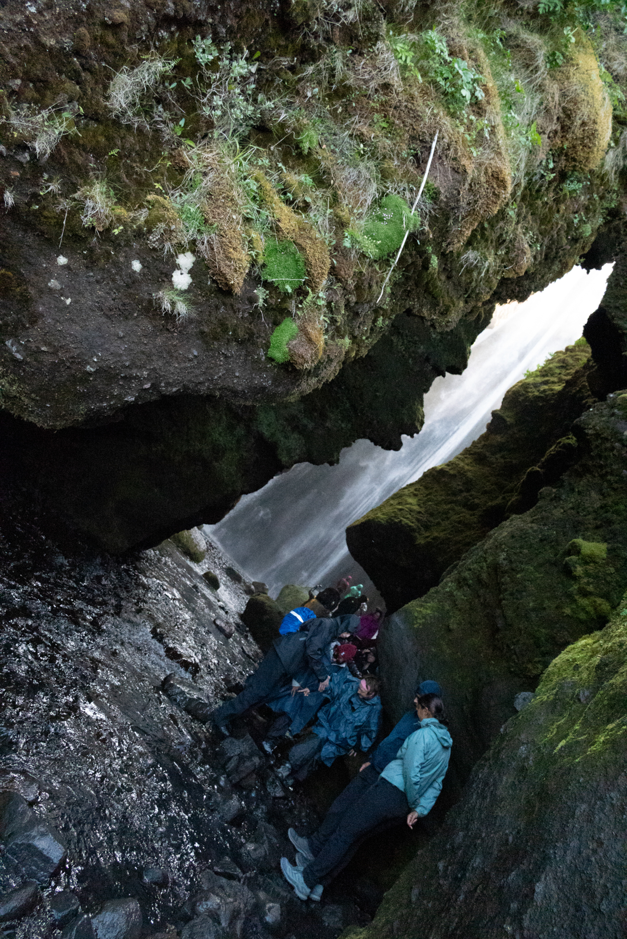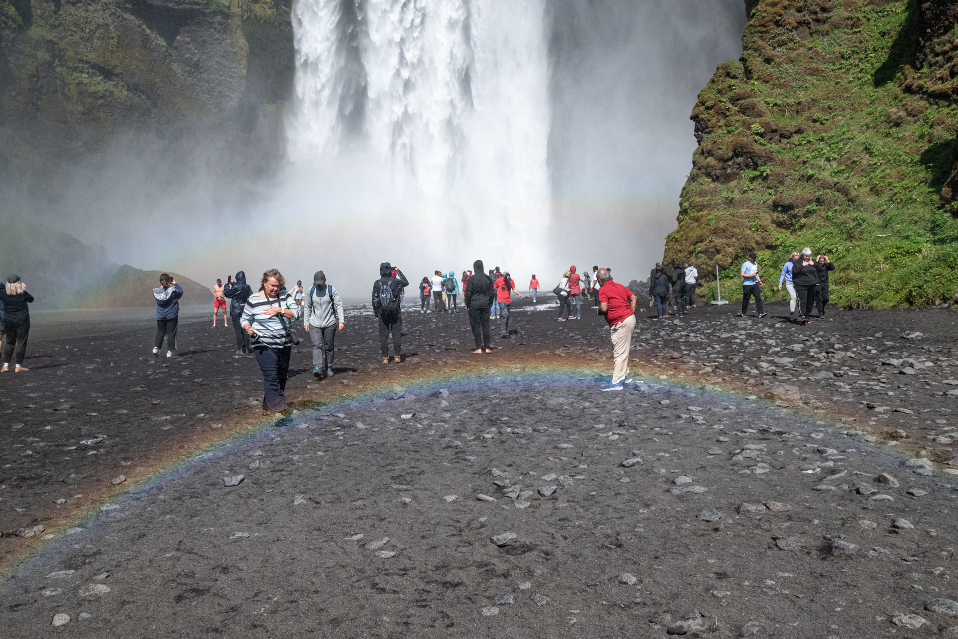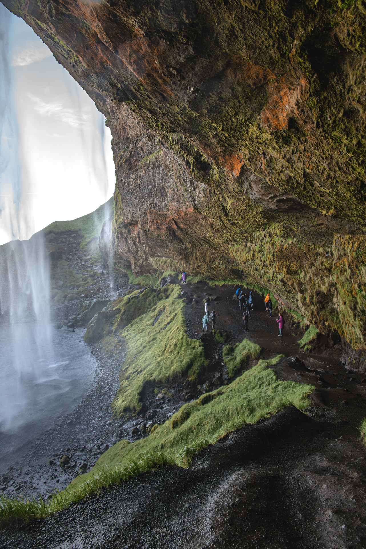 Als we over de ringweg rijden, zien we van kilometers afstand al het water van een tafelberg naar beneden storten. We kijken naar Seljalandsfoss, samen met Skógafoss waarschijnlijk één van de bekendste watervallen in IJsland. En ja, die bekendheid zorgt voor veel drukte en toeristen bij de waterval. Het leuke aan de Seljalandsfoss is dat je over een glibberig paadje en natte rotsen achter de 65 meter hoge waterval door kunt lopen.