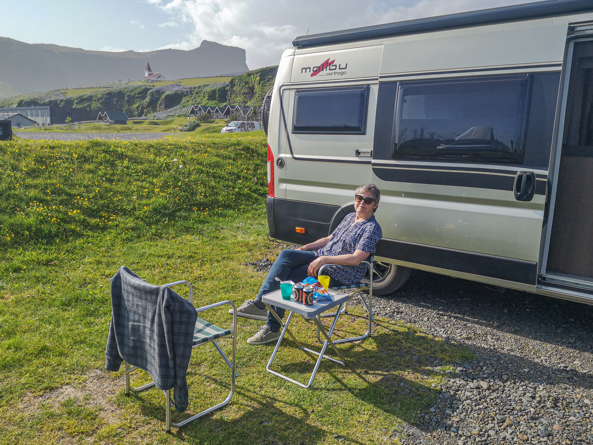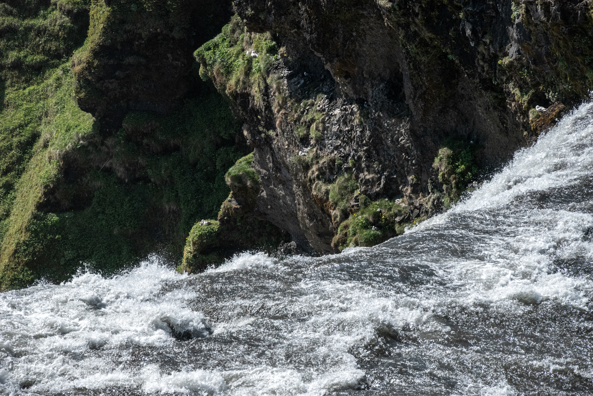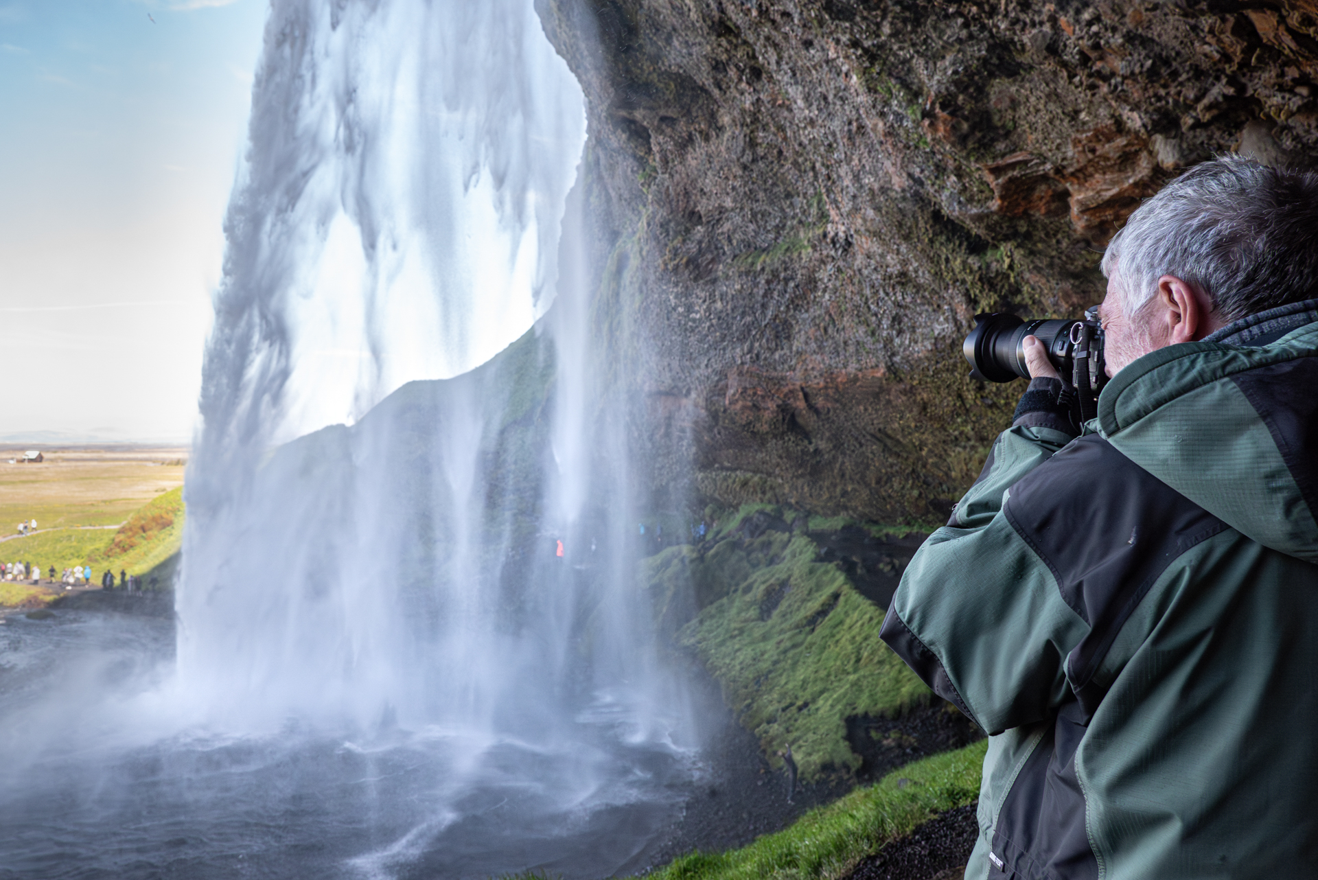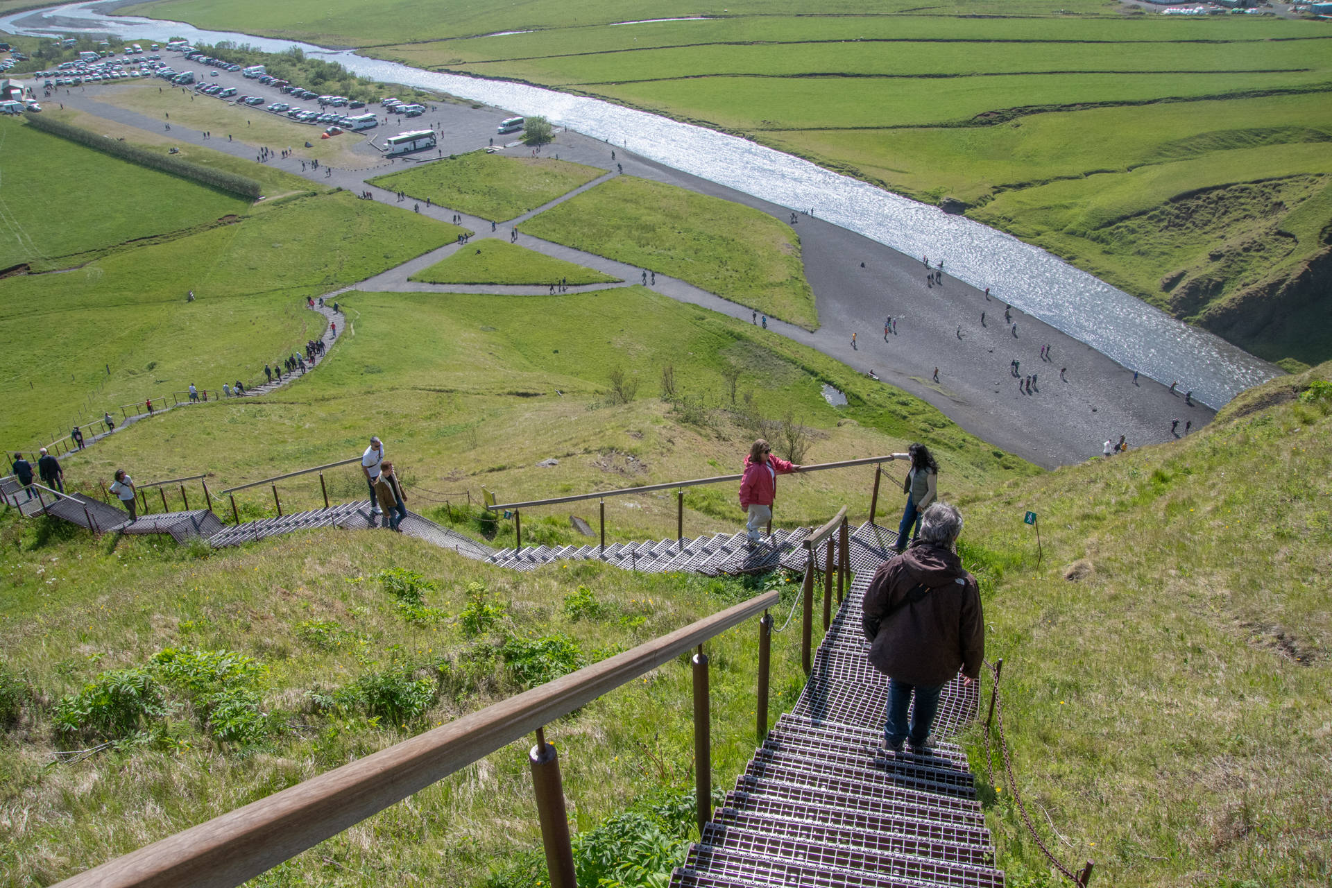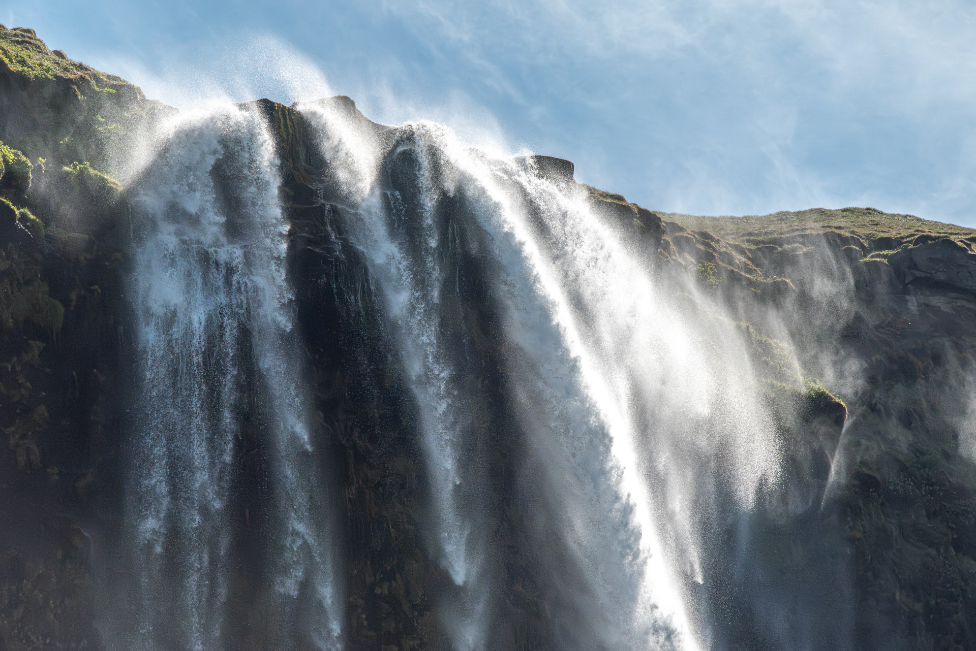 Als we over de ringweg rijden, zien we van kilometers afstand al het water van een tafelberg naar beneden storten. We kijken naar Seljalandsfoss, samen met Skógafoss waarschijnlijk één van de bekendste watervallen in IJsland. En ja, die bekendheid zorgt voor veel drukte en toeristen bij de waterval. Het leuke aan de Seljalandsfoss is dat je over een glibberig paadje en natte rotsen achter de 65 meter hoge waterval door kunt lopen.